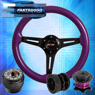 Purple Wood Deep Dish Steering Wheel + Quick Release Extender For 89-05 Eclipse