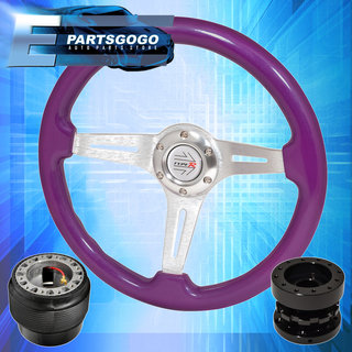 Purple Wood Silver Center Steering Wheel + Black Hub Extender For 92-96 Prelude