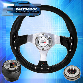 Pvc Black Fusion Style Steering Wheel + Gunmetal Quick Release For 89-05 Eclipse