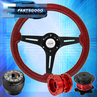 Red Black Deep Dish Steering Wheel + Quick Release + Extender For 89-98 240Sx