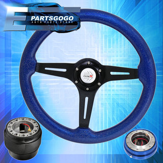 Steering Wheel Blue Wood Sparkling + Blue Slim Quick Release For 89-05 Eclipse