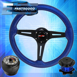 Steering Wheel Blue Wood Sparkling + Quick Release + Adapter For 88-91 Civic