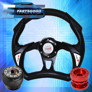 Type-R Black Battle Style Steering Wheel + Red Extender+Adapter For 88-91 Civic