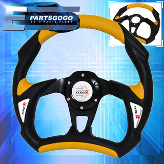Universal 320mm Yellow Black Steering Wheel Battle + Horn Button Type-R