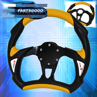 Universal 320mm Yellow Black Steering Wheel Battle + Horn Delete Plate Type-R