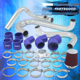 - Direct bolt-on aluminum turbo intercooler piping kit with silicone couplers.