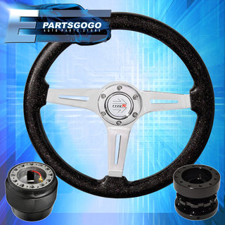 Black Extender + Metallic Black Deep Dish Steering Wheel + Hub For 96-15 Civic