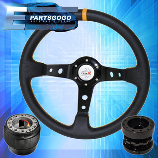Typer Black Yellow Steering Wheel + Extender + Adapter Hub For 96-15 Civic