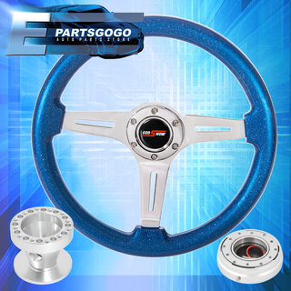 Metallic Ocean Blue Steering Wheel + Chrome Slim Quick Release For 96-00 Civic