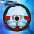 Universal 320mm 13" PVC Leather Red Silver Fusion Aluminum Steering Wheel Horn