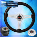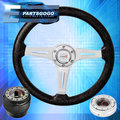 Black Extender + Metallic Black Deep Dish Steering Wheel + Hub For 92-95 Civic