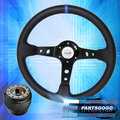 350mm Deep Dish Black Steering Wheel Blue Stitching + Adapter For 92-96 Prelude