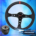 350mm Deep Dish Black Steering Wheel Red Stitching + Adapter For 92-96 Prelude