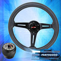 Gunmetal Wood Black Center Deep Dish Steering Wheel + Adapter For 89-05 Eclipse