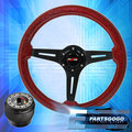 Metallic Red Wood Black Deep Dish Steering Wheel + Hub Adapter For 96-15 Civic