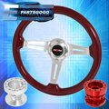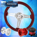 For 86-93 Integra Red Wood Steering Wheel + Quick Release + Chrome Hub Extender
