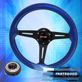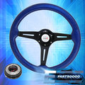 345mm Steering Wheel Black Center Metallic Blue Wood + Blue Slim Quick Release