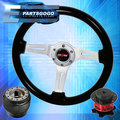 Black Wood Chrome Center Steering Wheel + Purple Quick Release For 90-97 Miata