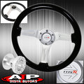 Black Wood Grain Chrome Center Steering Wheel + Black Extender For 86-01 Integra