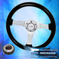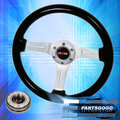 Black Wood Grain Trim Aluminum Center Steering Wheel + Black Slim Quick Release