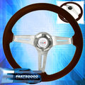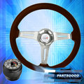 6-Bolt 345mm Dark Wood Chrome Center Deep Dish Steering Wheel Type-R Button