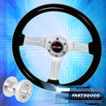 Black Wood Grain Trim Aluminum Center Steering Wheel + Adapter For 89-98 240Sx