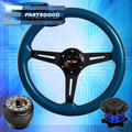 Blue Wood Black Center Deep Dish Steering Wheel Quick Release For 96-15 Civic