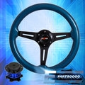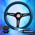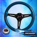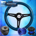 Blue Wood Black Aluminum Center Deep Dish Steering Wheel + Blue Quick Release