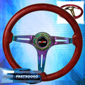 Metallic Red Wood Neo Chrome Center Deep Dish Steering Wheel + Godsnow Button