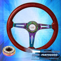 Metallic Red Wood Neo Chrome Deep Dish Steering Wheel + Red Quick Release