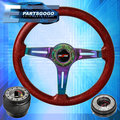 Metallic Red Wood Neo Chrome Steering Wheel Slim Quick Release For 89-05 Eclipse