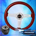 Metallic Red Wood Aluminum Chrome Center Steering Wheel + Hub For 96-15 Civic