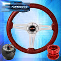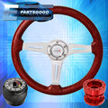 Metallic Red Wood Type-R Steering Wheel + Red Hub Extender For 89-05 Eclipse