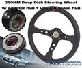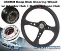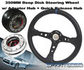 1989-2005 Eclipse 350mm Deep Dish Bk Steering Wheel+Adapter Hub+Quick Release Bk