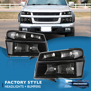 For 04-12 Chevy Colorado Canyon Black Clear Headlights Bumper Lamps Left + Right