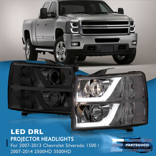 For 07-13 Chevy Silverado 1500 2500 LED DRL Bar Tube Projector Headlights Smoke