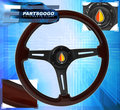 350mm Deep Dish 6-Bolt Hole Wood Steering Wheel Jdm Elder Leaf Button Horn Badge